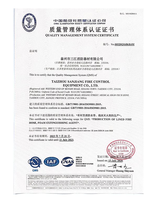 Qituo fire hoses are approved by UL, FM, MSHA, EN14540, DIN14811, BS6391, MED, LR, NFPA1961, EN671, EN694, NSF, CCC, CCS, CE. Qituo fire has passed the ISO 9001 certification.
